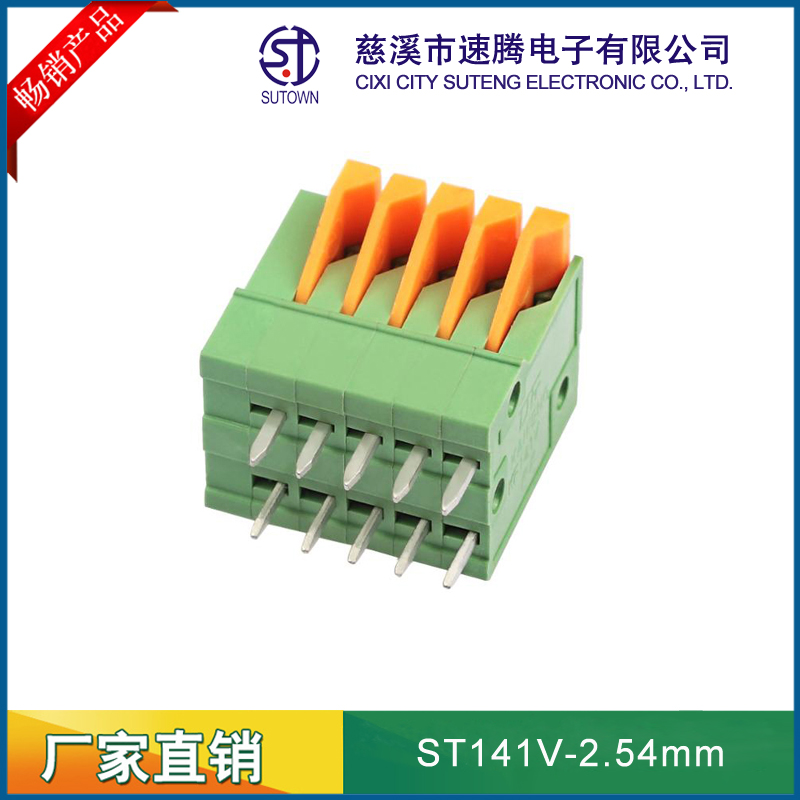 Material and Plating Spacing:2.54mm Plastic parts;PA66,UL94V-0 Terminal:Brass,Tin plating Spring:Stainless steel Electrical performance Rated voltage:150V Rated current:5A Ambient temperature:-40℃~+105℃ MAX Soldering:+250℃,5s Withstanding Voltage:AC1500V/1Min Contact resistance:20mΩ Insulation resistance:5000MΩ/1000V Wire diameter:24-20AWG 1mm2 Torque:0.4Nm Strip length:11mm