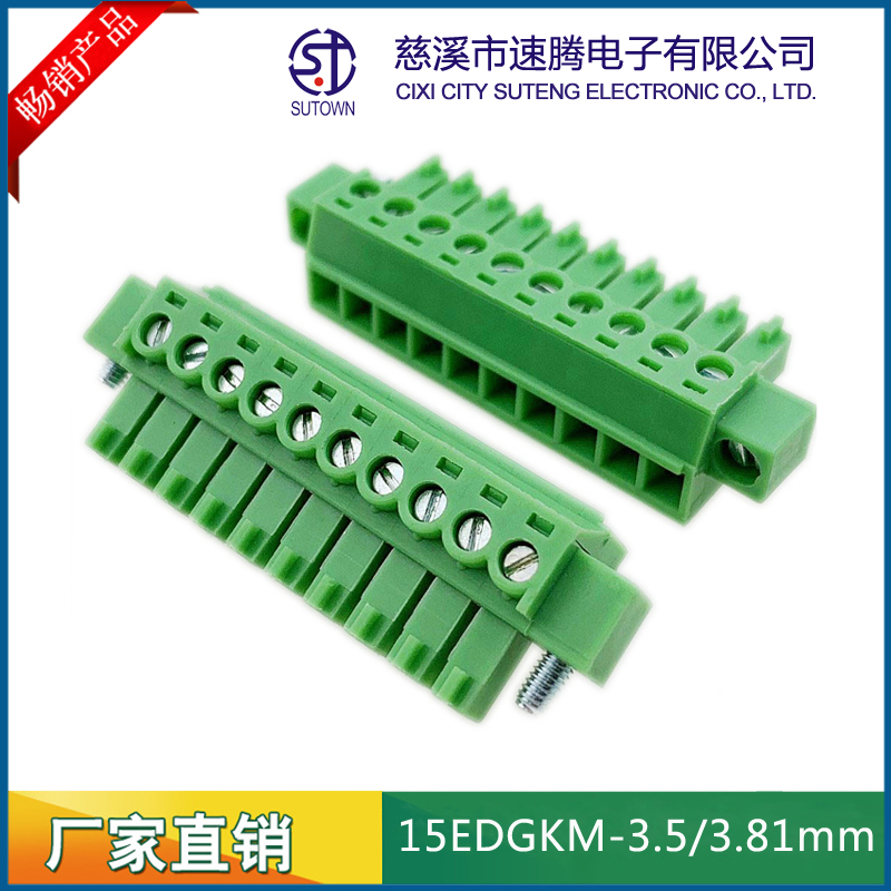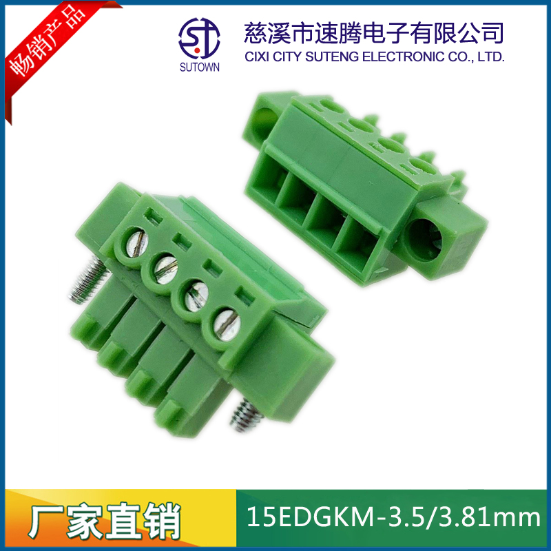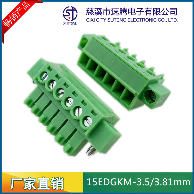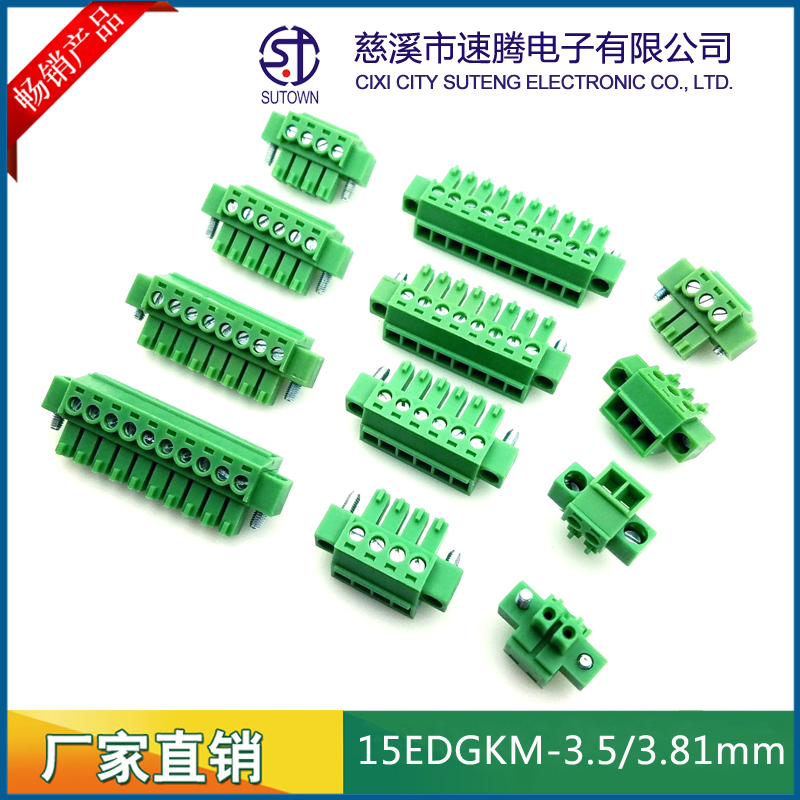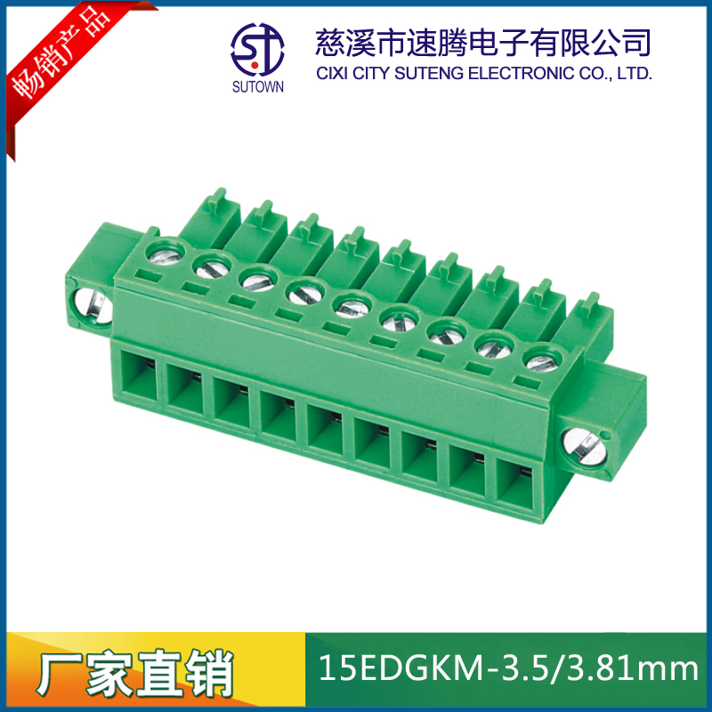 Material and Plating Spacing:3.5/3.81mm Plastic parts;PA66,UL94V-0 Cage:Brass,Tin plating Screw:M2.0,Steel,Zn Plating Terminal:Phosphor bronze,Nickel plating Electrical performance Rated voltage:300V Rated current:8A Ambient temperature:-40℃~+105℃ MAX Soldering:+250℃,5s Withstanding Voltage:AC2000V/1Min Contact resistance:20mΩ Insulation resistance:5000MΩ/1000V Wire diameter:28-16AWG 1.5mm2 Torque:0.2Nm Strip length:6-7mm