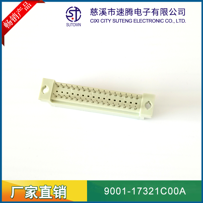 品名:歐式插座連接器型號:9001-17321C00A 規格:32pin屬性:直針公座 180°間距:2.54間距 備注:中間排1排